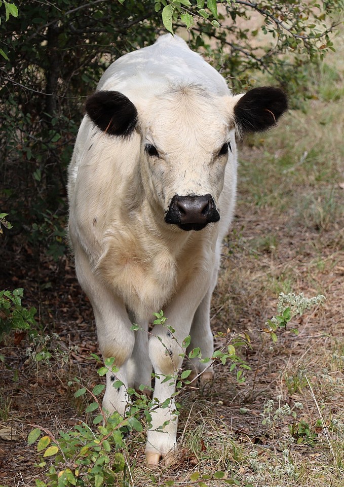 This stunning heifer was born born May 9, 2025. Out of Honey (British White) by Abraham (mini Belted Galloway). She looks like her British White dam. She will be weaned and ready to be delivered in early- to mid-November.